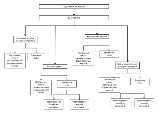 У детей пульпит развивается в короткие сроки, что связано с незавершенным процессом минерализации твердых тканей зубов в течение нескольких лет после их прорезывания, незрелостью иммунной системы, особенностями морфологического строения зубов у детей в процессе их роста и развития. [1, 2]